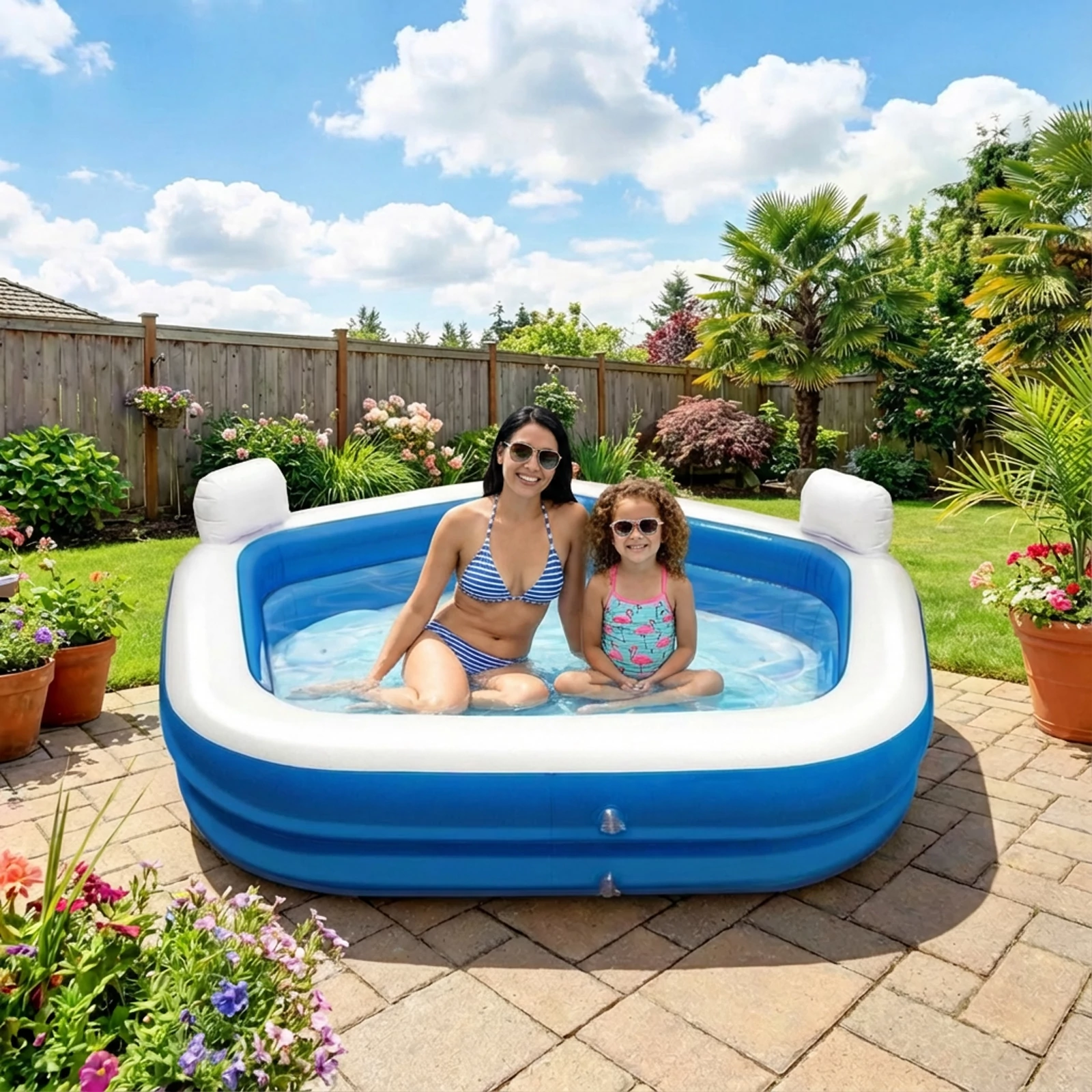 A Creative Kids kétszemélyes, felfújható családi medence ideális választás a nyári hűsöléshez és kikapcsolódáshoz. Kényelmes kialakításának köszönhetően az egész család élvezheti benne a pancsolást. 2 darab beépített fejtámla és 2 darab italtartó biztosítja a gondtalan kikapcsolódást. A medence gyűrűi külön-külön fújhatóak fel, ami megkönnyíti a használatot és növeli a biztonságot. Kompakt súlyának és méretének köszönhetően könnyen szállítható és tárolható.