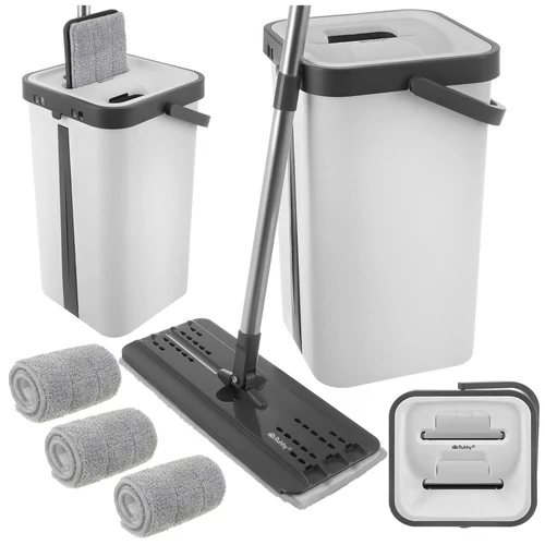 Lapos felmosófejjel, kétkamrás vödörrel, 1 a tiszta és 1 a szennyezett víznek + 3 huzat - Lengyel RUHHY márka - a legmagasabb minőségű szeparáló mop