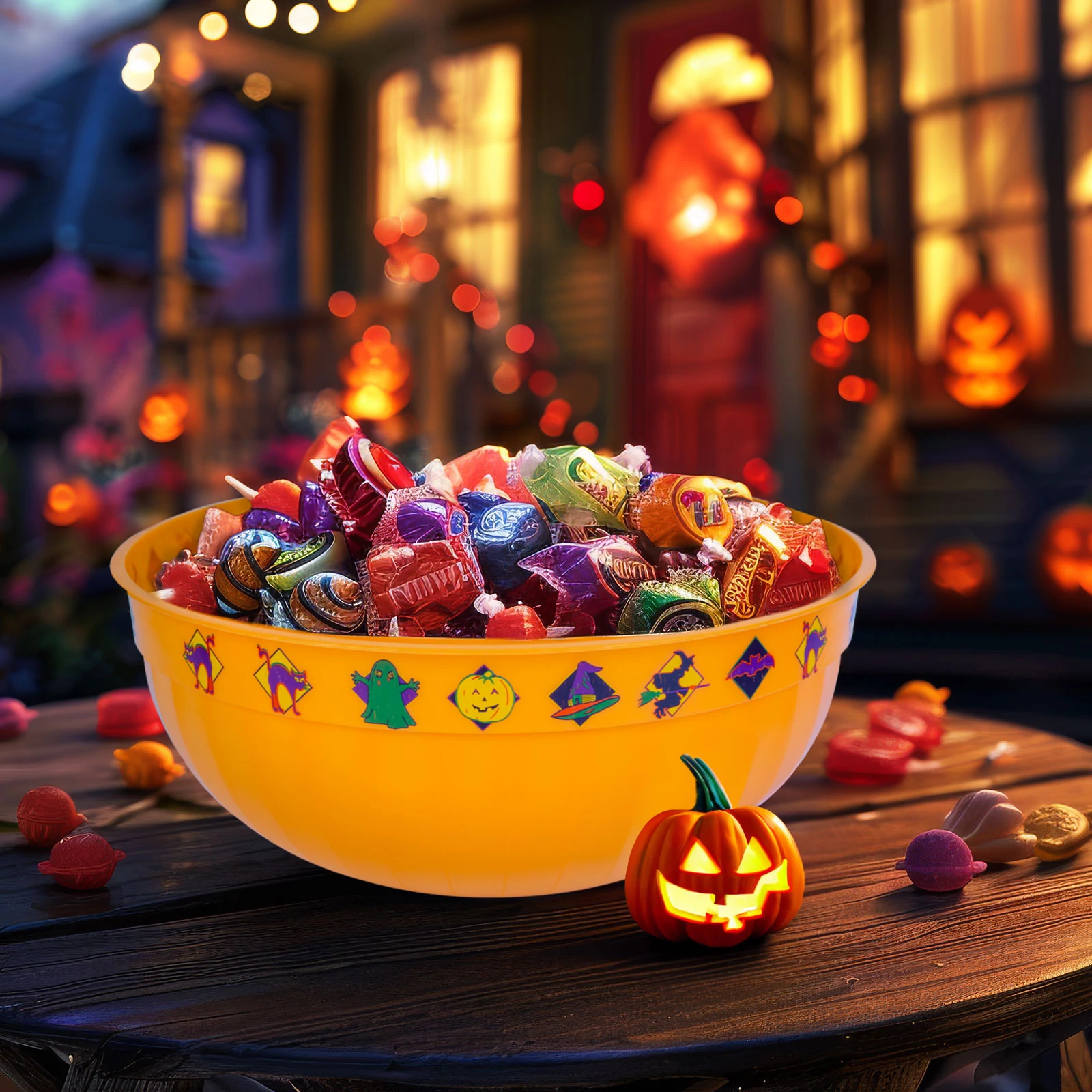 Nagyméretű, kör alakú, peremén Halloween-i motívumokkal díszített kínálótál. Kiváló választás "csokit vagy csalunk" események alkalmával vagy, ha szeretné feldobni a halloweeni asztali dekorációt! A kínálótálba mérete miatt sokminden elfér, legyen szó édességekről vagy akár gyömölcsökről. A színe és formája miatt garantáltan fel fogja hívni a vendégek figyelmét. A rugalmas, mégis strapabíró tál BPA mentes műanyag anyagból készült, amely biztonságos használatot és könnyű tiszíthatóságot biztosít.