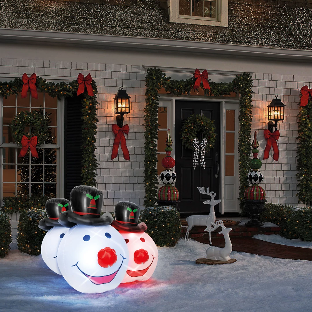 A karácsonyi időszak legújabb, innovatív dekoreszköze a felfújható, villogó LED-es hóemberfej. Nagy méretének köszönhetően elhelyezhető nagyobb kertekben is. A hóember belsejében található piros-kék LED-ek ütés hatására kezdenek el villogni kb 12-15 mp-ig. A LED-ek energiaellátásáról nem cserélhető gombelem gondoskodik.
