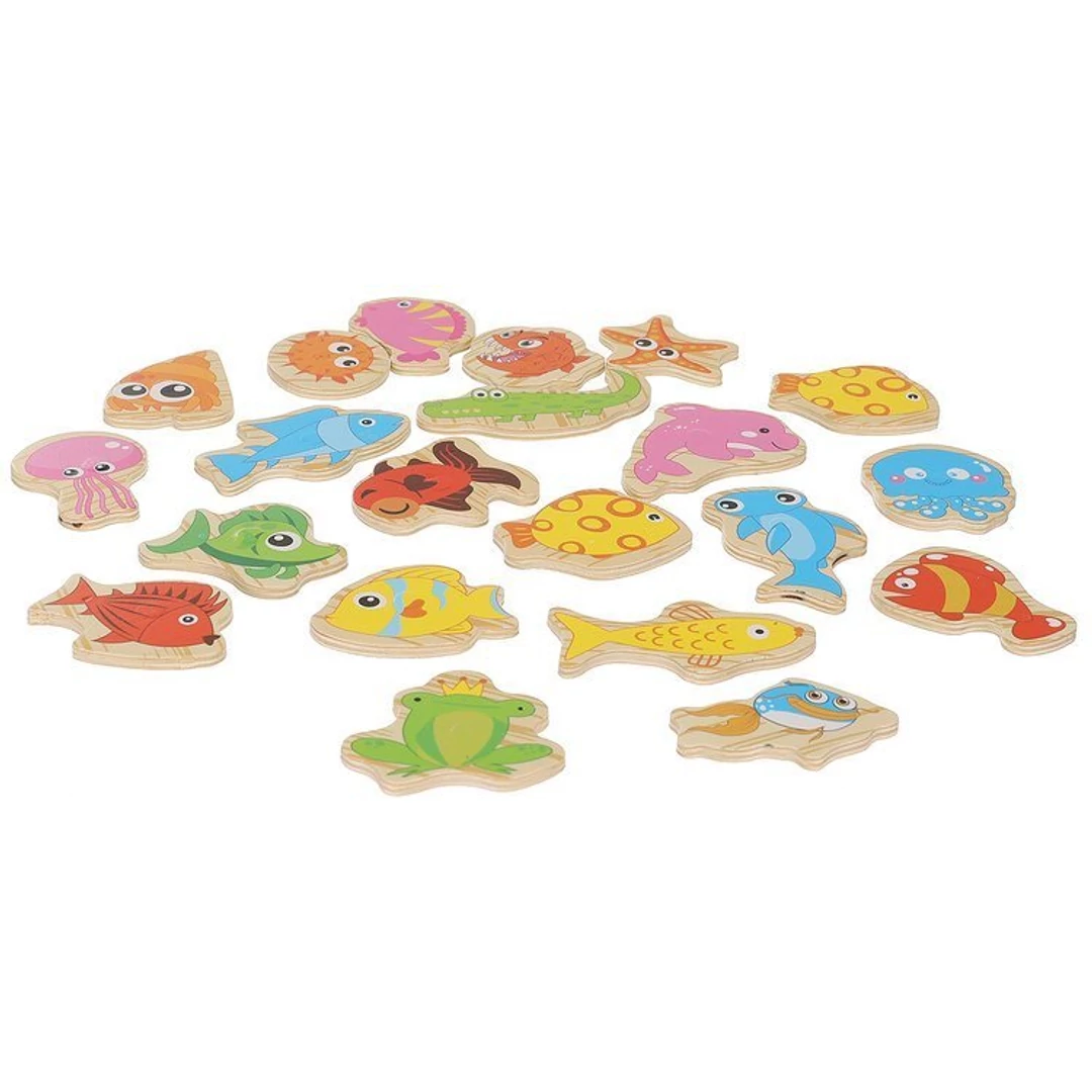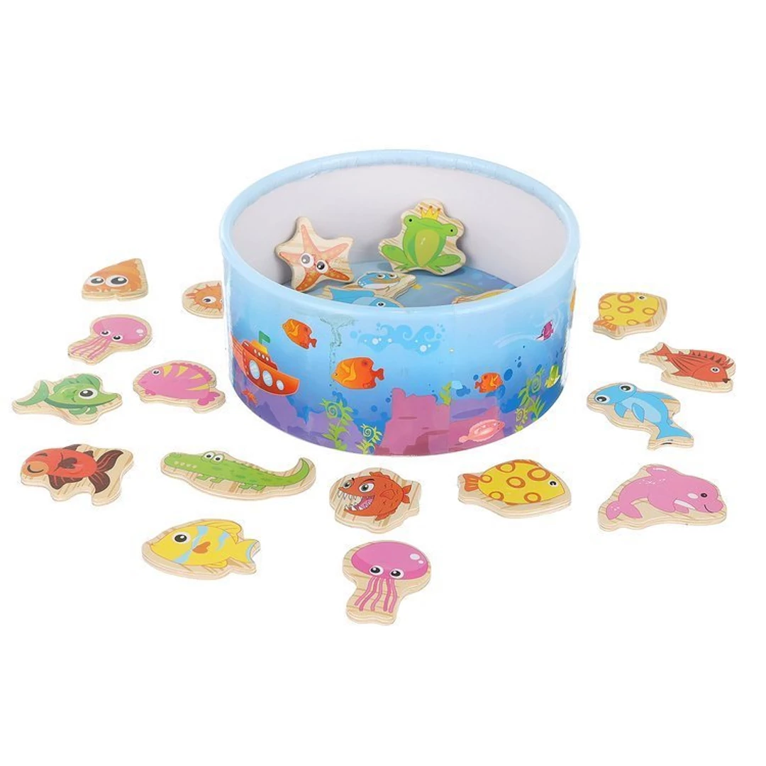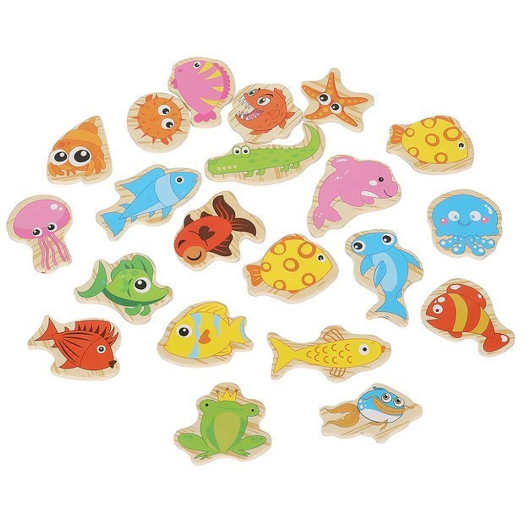 25 RÉSZES - a játék egy érdekes készlet, amely 22 tengeri lényből és 2 horgászbotból áll; a horgászbotok és a tengeri élőlények kis mágnesekkel rendelkeznek, ami vonzóbbá teszi a játékot és javítja a fogást. A készlet tartalmaz egy dobozt, amely szórakoztató akváriumként is használható.