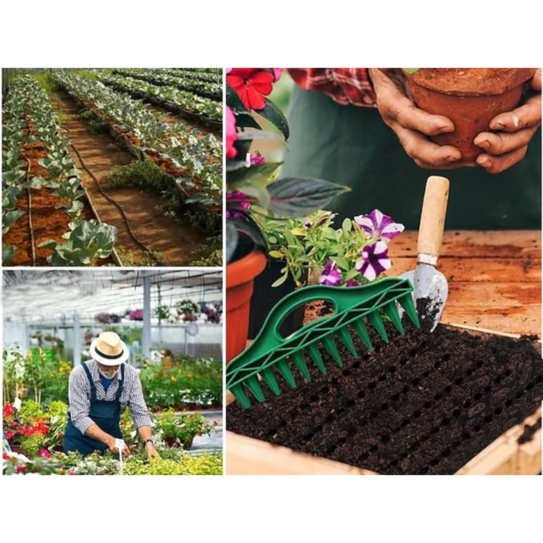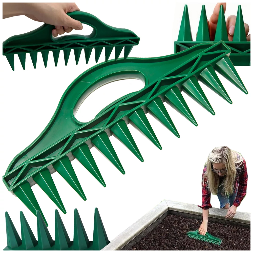 - GYORS ÉS PONTOS - A 12 kúpos csúcsnak köszönhetően gyorsabban, pontosabban és kevesebb erőfeszítéssel készítheti elő a talajt. 12 egyenletes távolságban elhelyezett lyukkal nemcsak esztétikus ágyáselrendezést érhet el, de az ültetési tervet is pontosabban tudja követni.