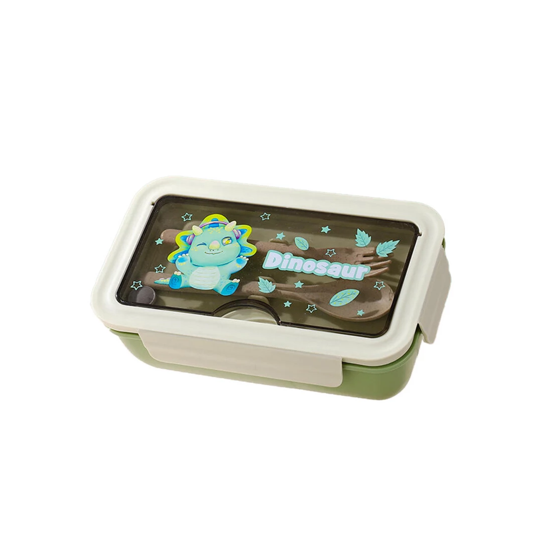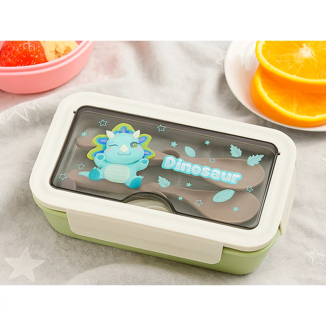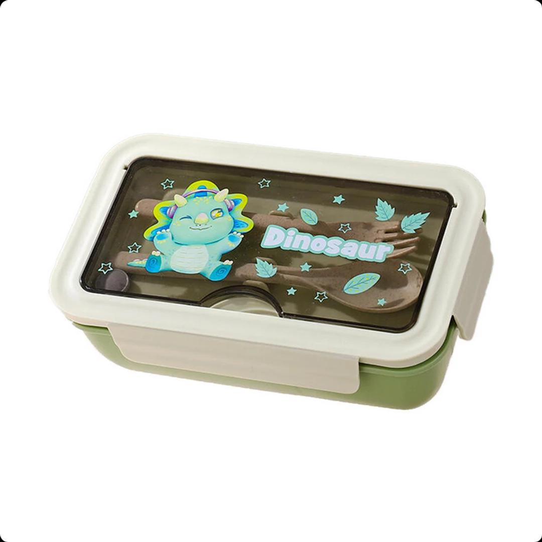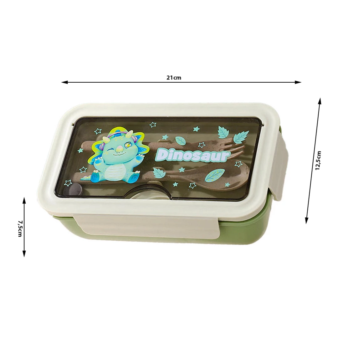 Ebéddoboz 2 rekesszel és evőeszközökkel zöld színben