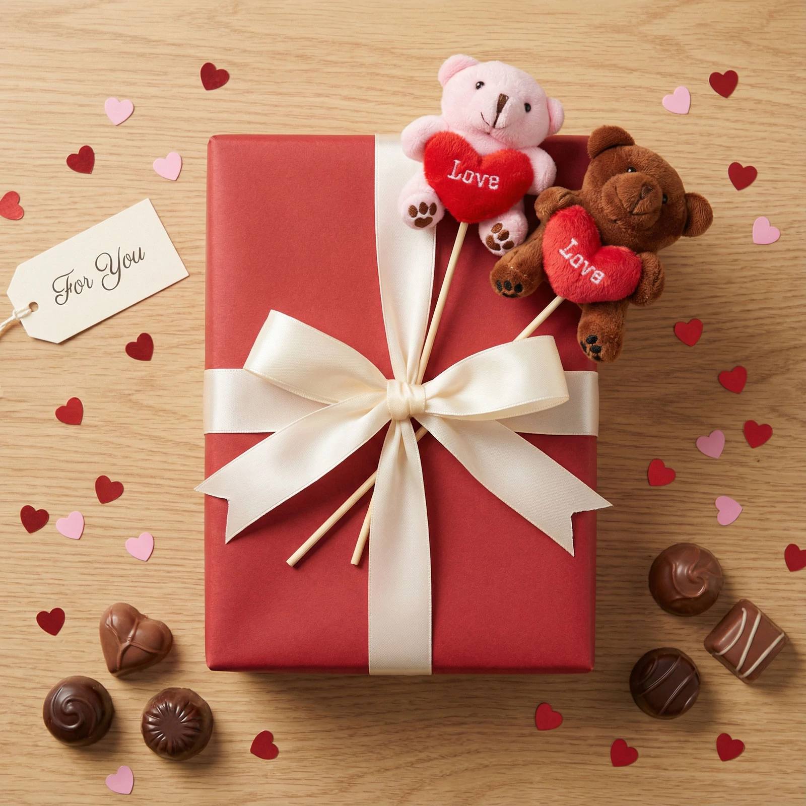 - Piros szívvel és "Love" felirattal