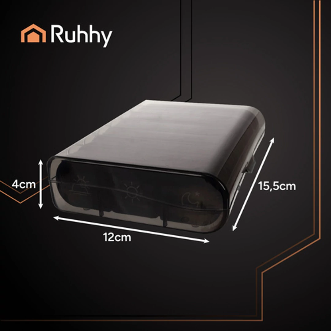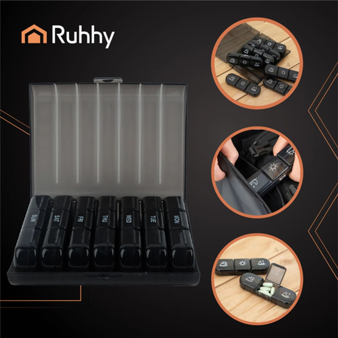 - KÉNYELEM - a RUHHY szervező könnyű, kompakt és funkcionális formája megkönnyíti a gyógyszeradagolás megtervezését az egész hétre – otthon és utazás közben is