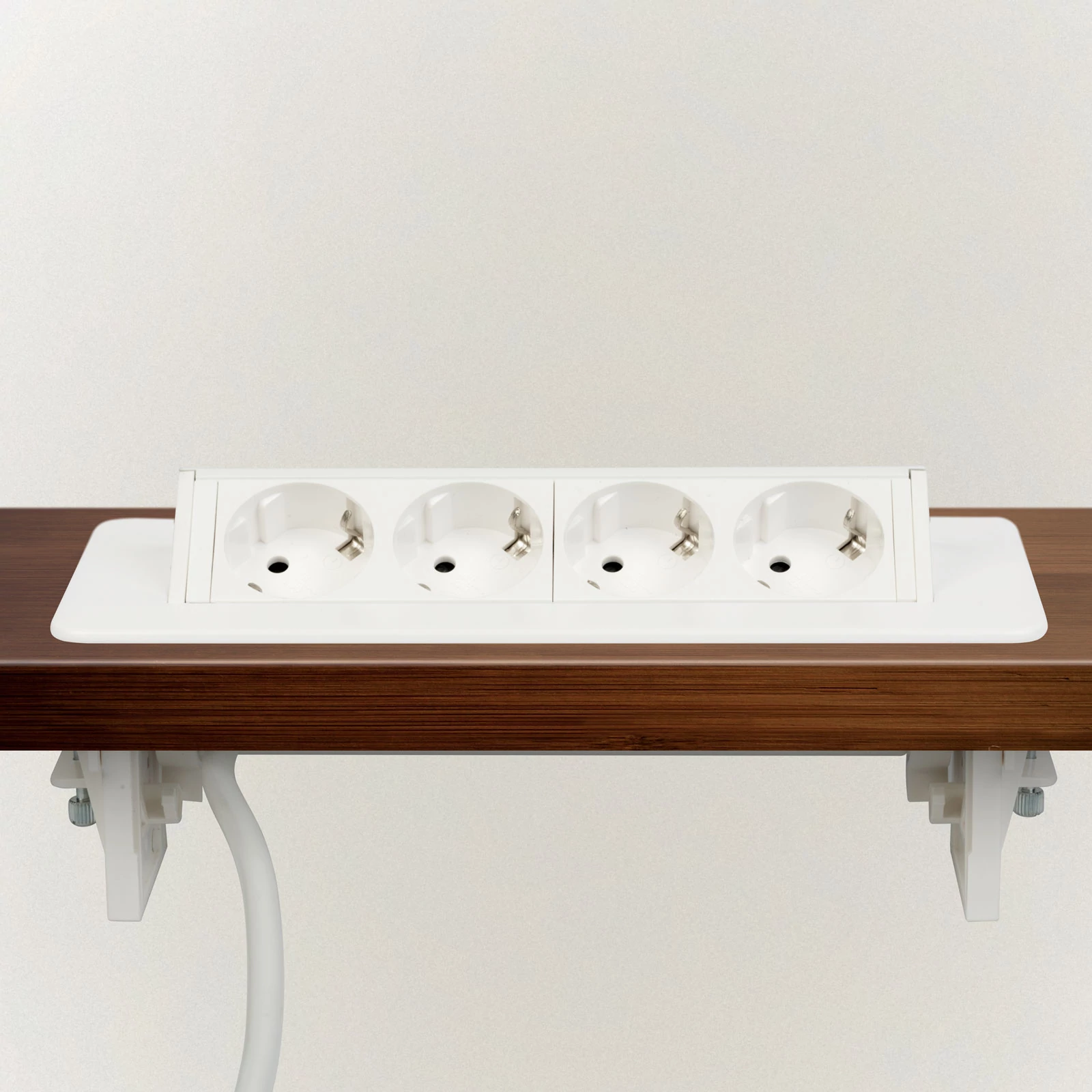 Süllyeszthető elosztó irodai és otthoni felhasználásra, matt fehér felülettel, 4 db gyermekvédelemmel ellátott aljzattal. Asztala, bútora legyen mindig elegáns és rendezett, mégis funkcionális. A rejtett elosztó kiváló megoldás lehet ha már például kész konyhával rendelkezik, de nincs elegendő konnektor a kívánt helyen. Ilyenkor falvésés és villamos hálózat bővítés nélkül, remek alternatíva lehet egy rejtett elosztó. Egy mozdulat és máris rendelkezésre áll 4 szabad konnektor. Ideális lehet olyan elektromos eszközökhöz, amit nem folyamatosan használunk, kenyérpirító, vízforraló... Ha használaton kívül vannak, az "flip-up" elosztó egy mozdulattal elrejthető, ezzel is megkönnyítve például a takarítást, valamint rendezett, letisztult külsőt ad a helységnek.