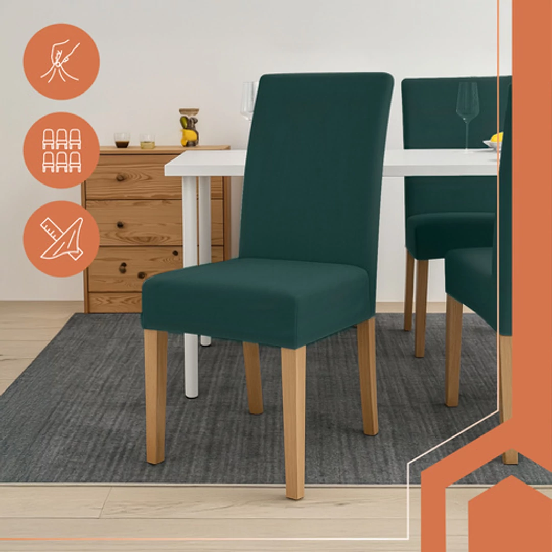 RUHHY székhuzat-szett (6 db) – univerzális, üvegzöld rugalmas bársony 65x40x35 cm