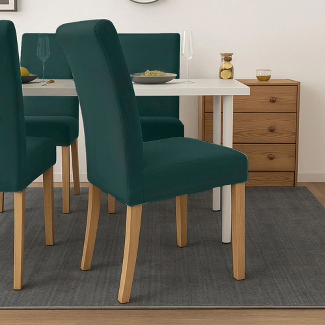 Ez a RUHHY huzat puha, rugalmas bársonyból készült, tökéletes megoldás széked védelmére és felfrissítésére. Felveszi a bútor formáját, a helyén marad, és bármilyen belső térbe otthonos, elegáns megjelenést kölcsönöz. A üvegzöld szín gyakorlatilag bármilyen dekorációhoz illik, mérete pedig 65x40x35 cm, így a piacon kapható legtöbb standard székhez illik.