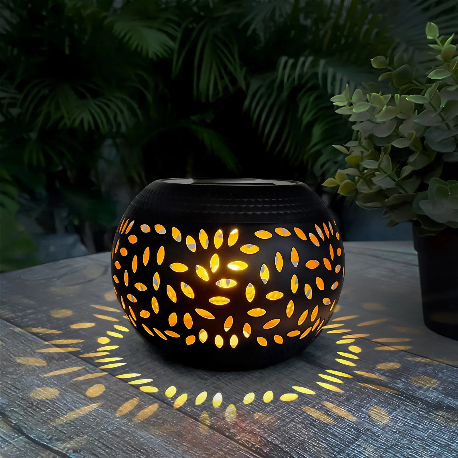 Ez a hangulatos, gömb formájú kültéri dekor lámpa valósághű láng effektussal teremt meleg fényt teraszán vagy kertjében. A 12 darab sárga “táncoló” LED izzó imitálja a láng lobogását. A beépített 45 × 45 mm-es napelem napközben feltölti a nagykapacitású akkumulátort, így akár 6-8 órán keresztül is képes működni. Az elegáns fém külső héj látványos fény-árnyék mintázatot vet a környezetére.