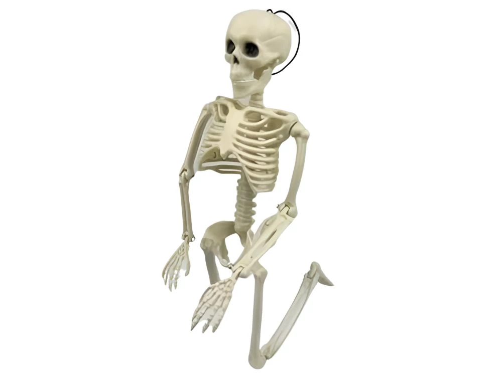 - Emberi csontváz 40 cm magas, ideális Halloween dekorációnak. Mesterséges anyagokból készült, valósághűen reprodukálja a csontváz megjelenését. A kialakítás lehetővé teszi a felakasztást, így tökéletes ijesztő hangulatot teremthet beltéren vagy kültéren. A csontok és ízületek részleteit gondosan reprodukálták , így hiteles megjelenést kölcsönöznek neki .