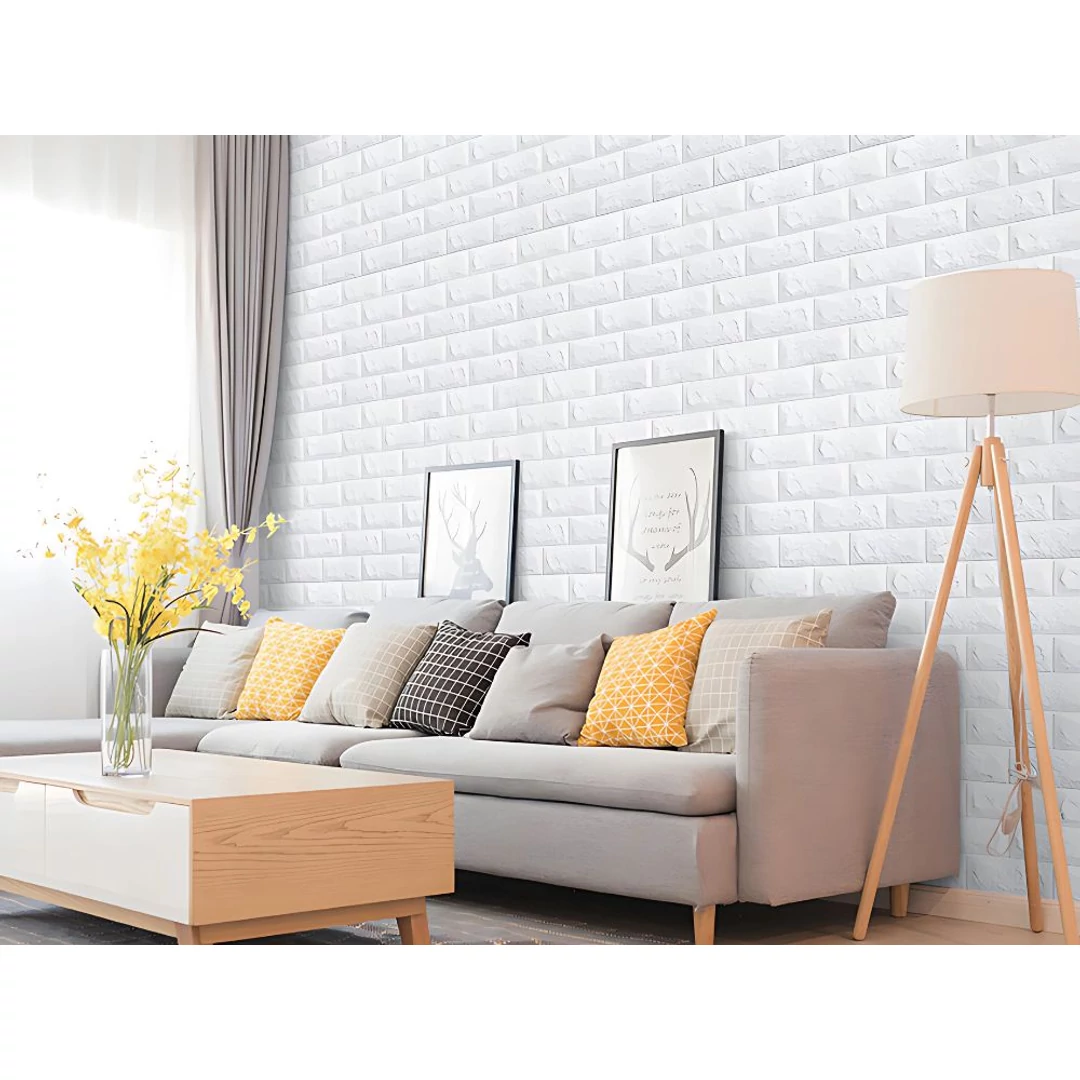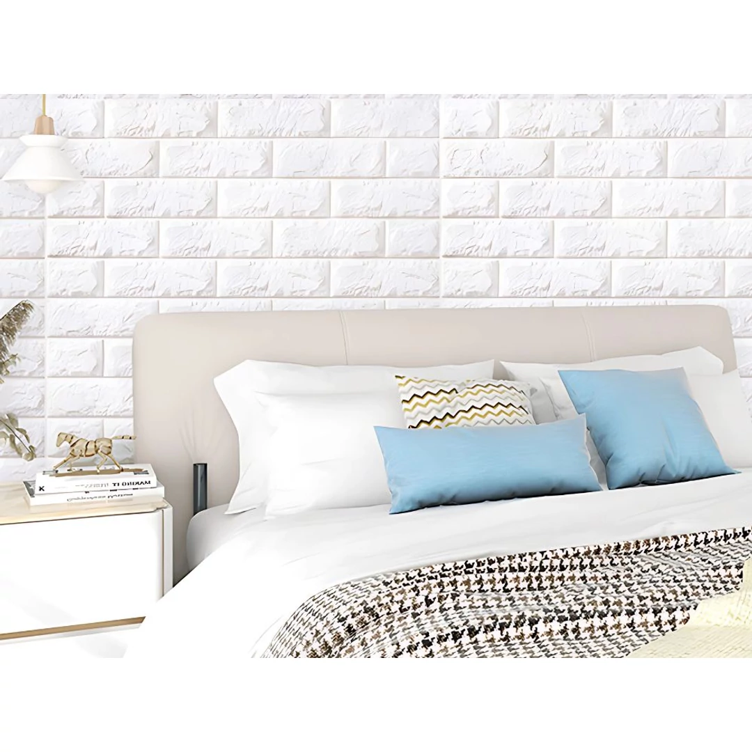 Öntapadós tapétaelem habszivacsból fehér 3D hatású tégla mintával